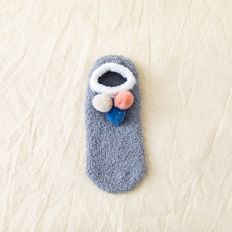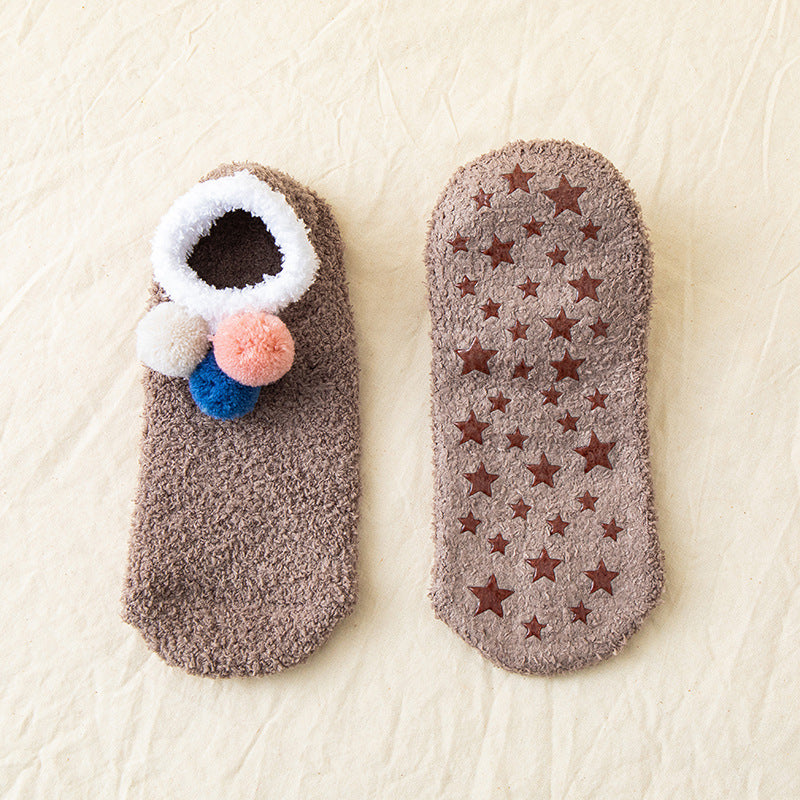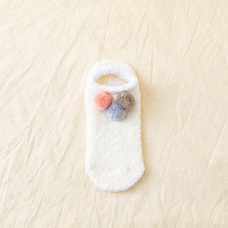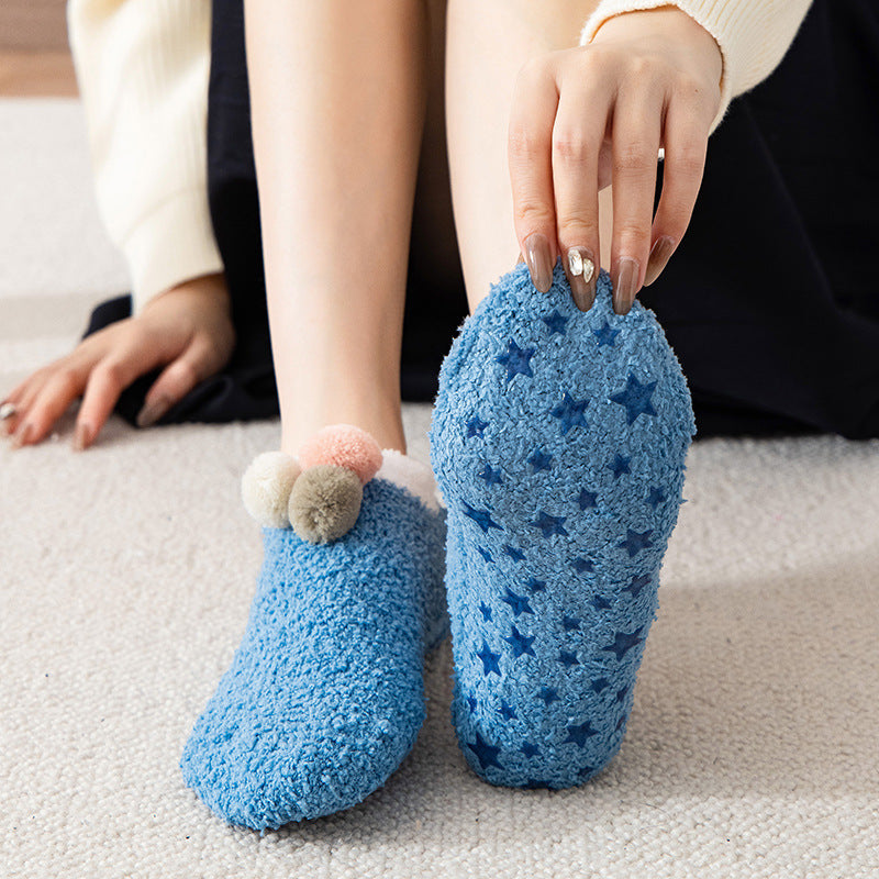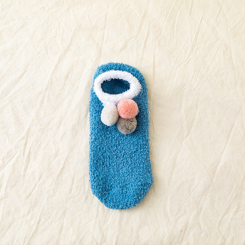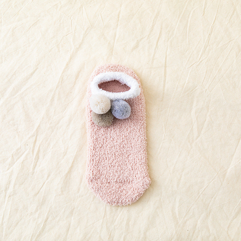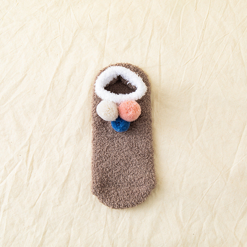 (5 PAIRS) 3 Ball Winter Solid Coral Velvet Floor Socks