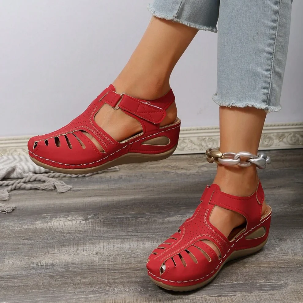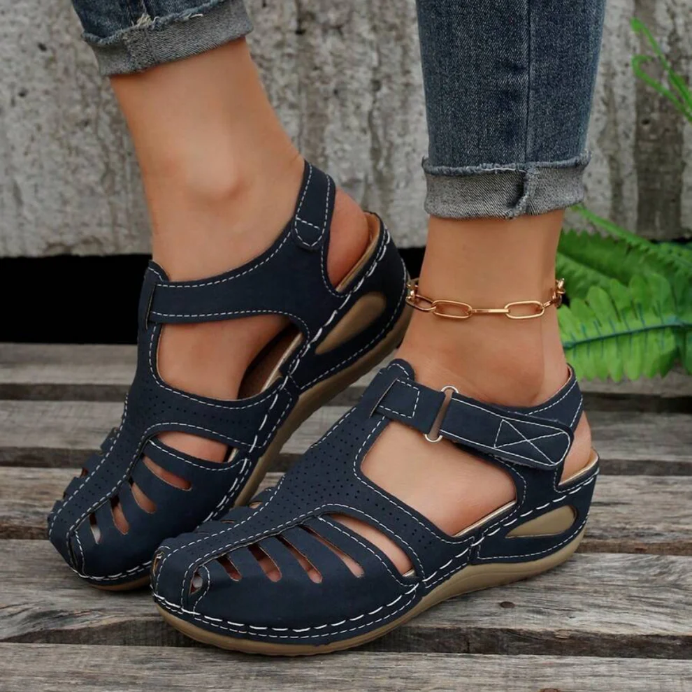The summer women's sandals with hook and loop design, are easy to take on and off, fit for any type of foot.