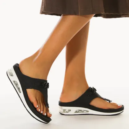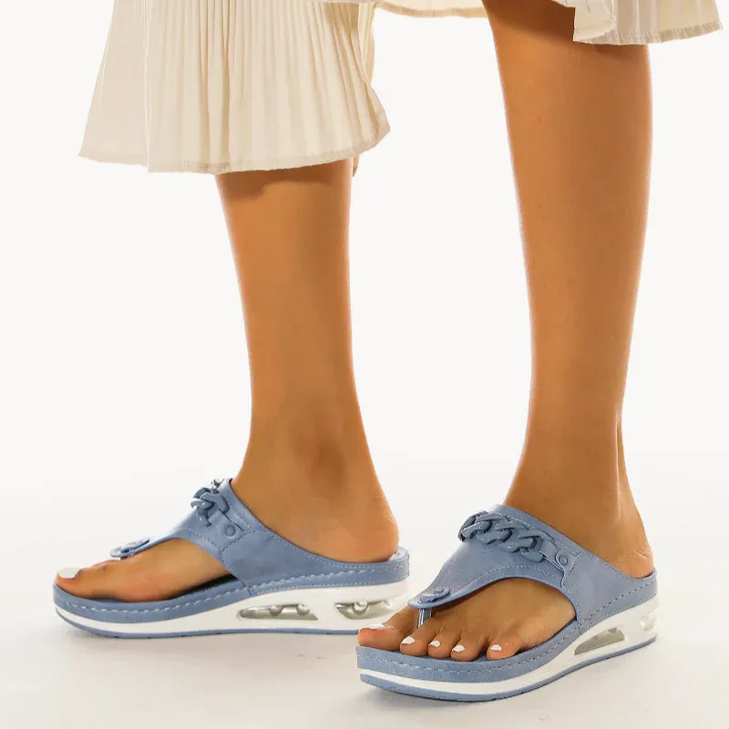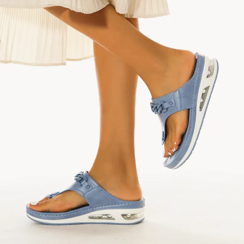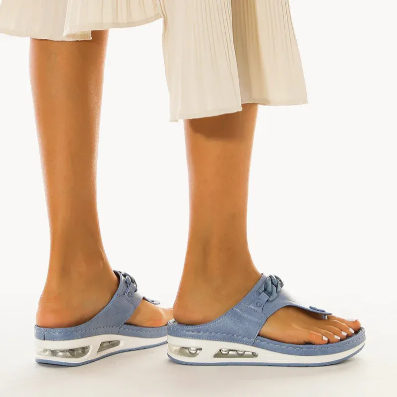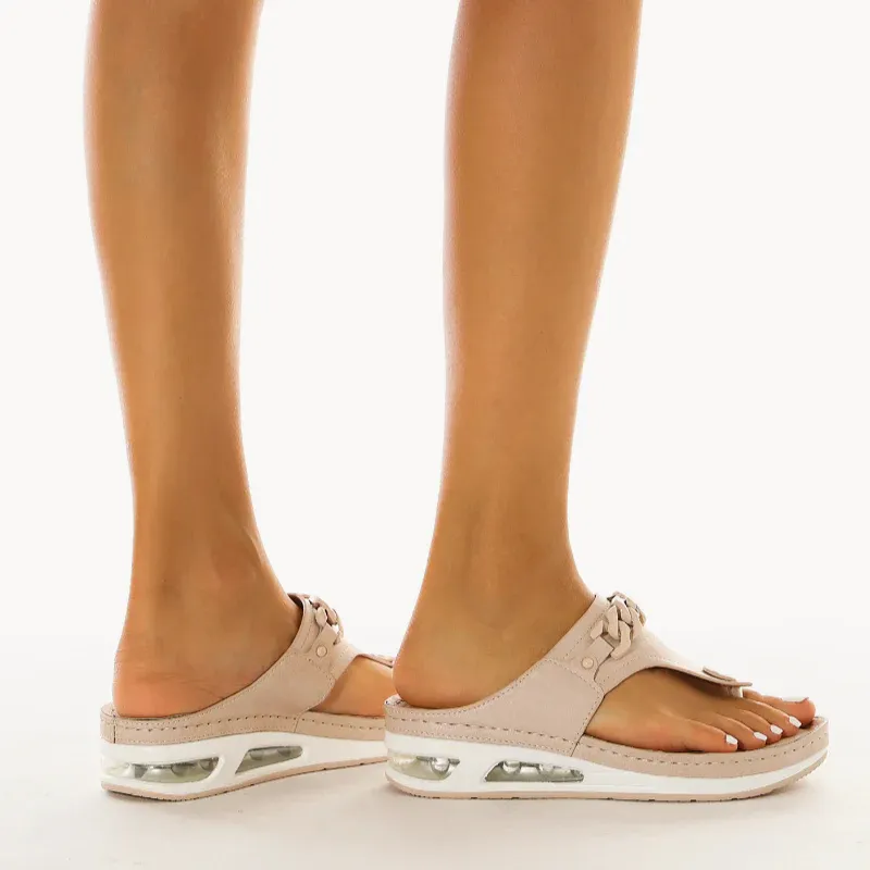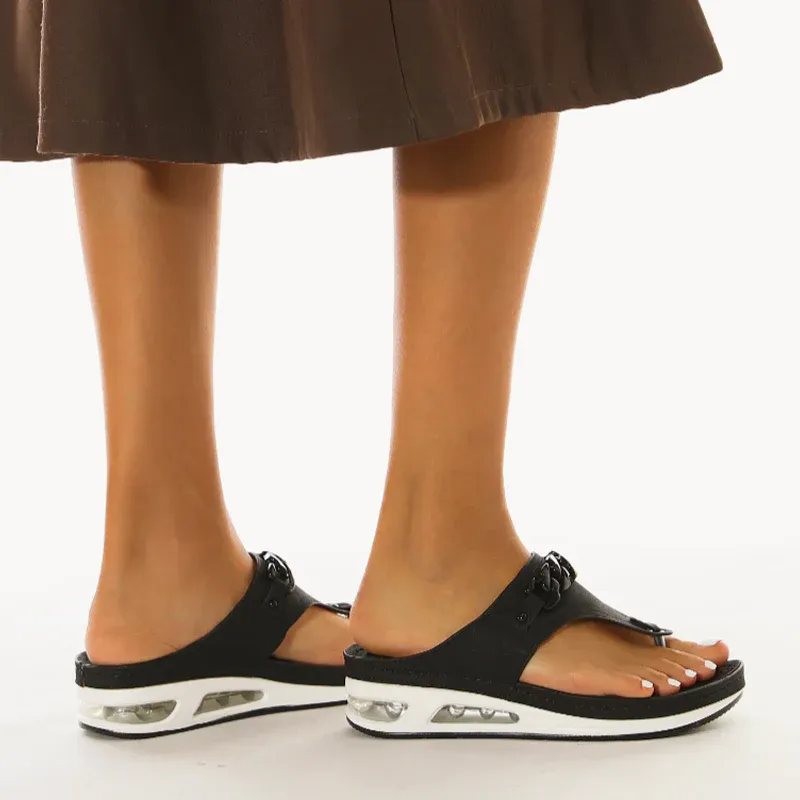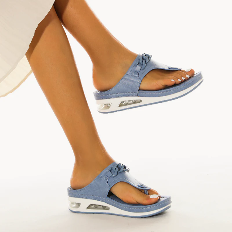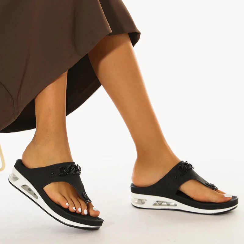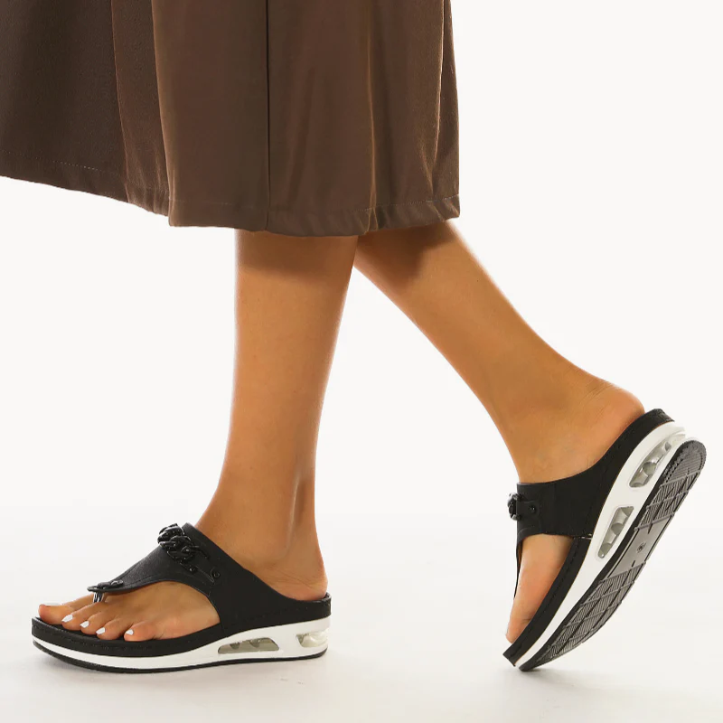 The cushion-like, double-padded memory foam insole is very soft. And the sandal is easy to combine. Don't worry about that.