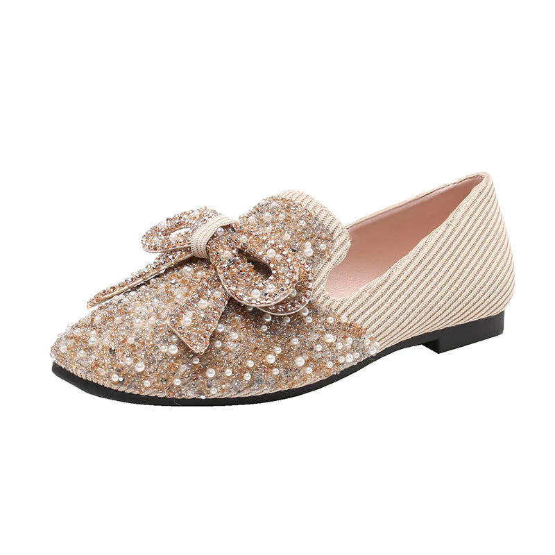 Crystal Bow Flat Breathable Loafers