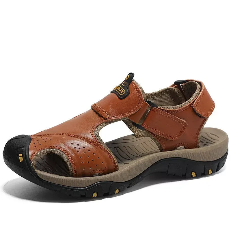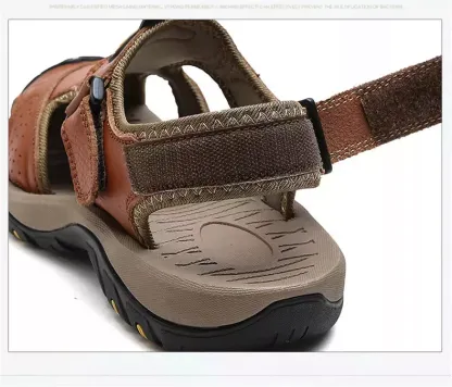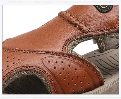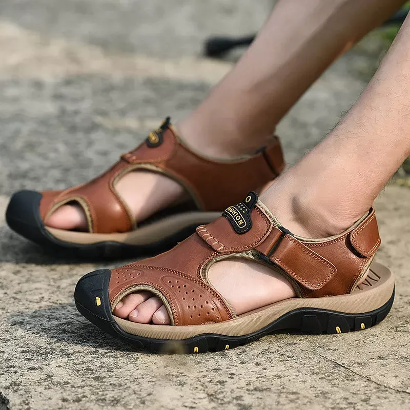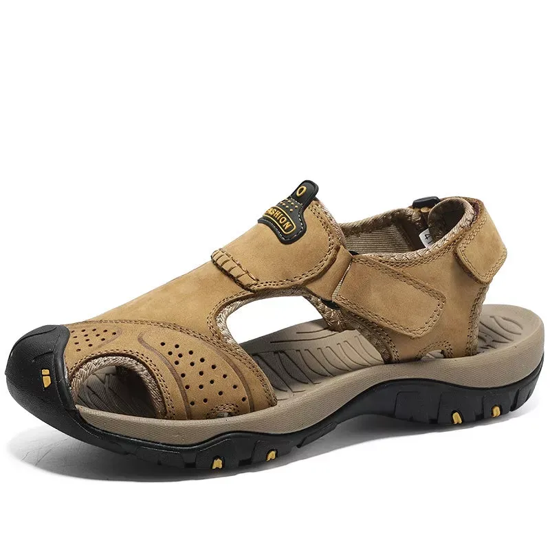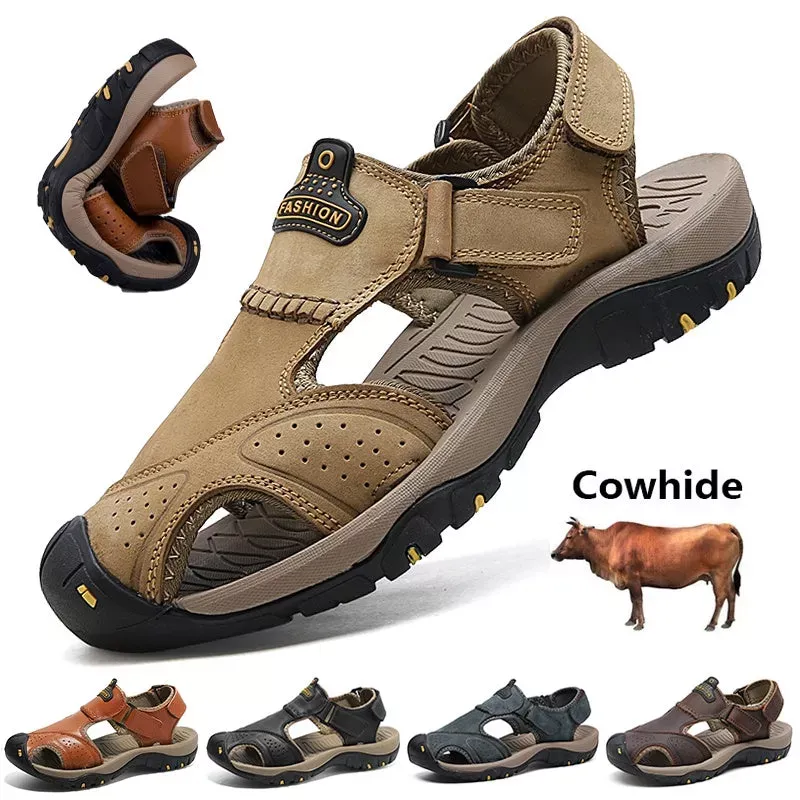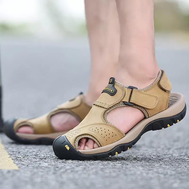 Split leather lining with a thin layer of PU. waterproof and scratch resistant. but not plastic! These closed toe sandals feature an anti-collision rubber toe cap to keep your feet safe and comfortable in the outdoors.