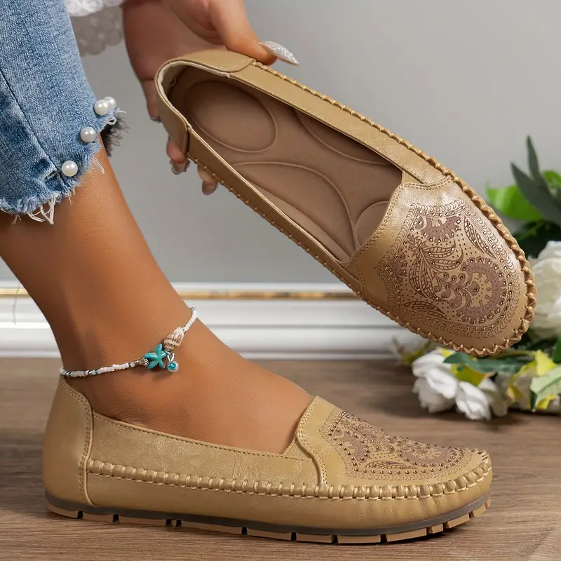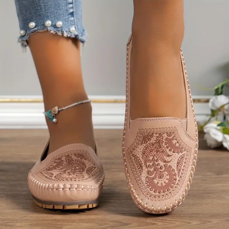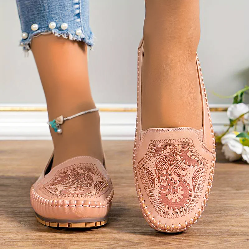 Womens Retro Crystal Flat Shoes
