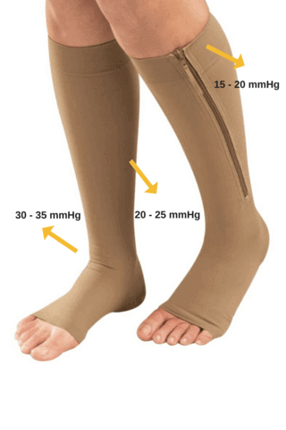 The Zipped Open Toe Compression Socks' graduated compression targets each area with different and perfect pressures:
